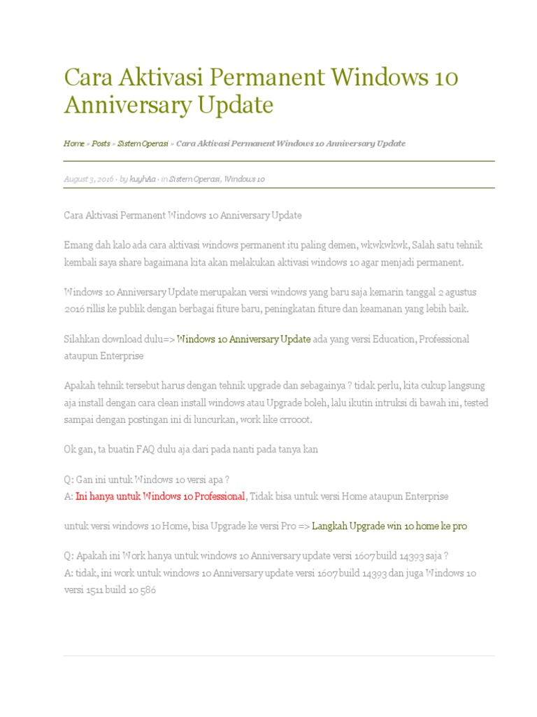 Cara Aktivasi Windows 10 : cara aktivasi windows 10 pro ~ ~Z_Bles_comunity_all~. Pertanyaan ini mungkin masih banyak ditanyakan oleh para pengguna windows 10 khususnya yang baru 'hijrah' dari windows 7 atau windows 8. Windows sendiri memiliki beberapa jenis dan salah satu keluaran terakhir dari windows adalah windows 10. Seperti itulah cara aktivasi windows 10 di pc kita. Kali ini irul komputer share cara aktivasi windows 10 all version secara gratis. Cara ini bisa dilakukan dengan mudah jika anda memperhatikan dan mengikuti setiap langkah demi langkah yang.
